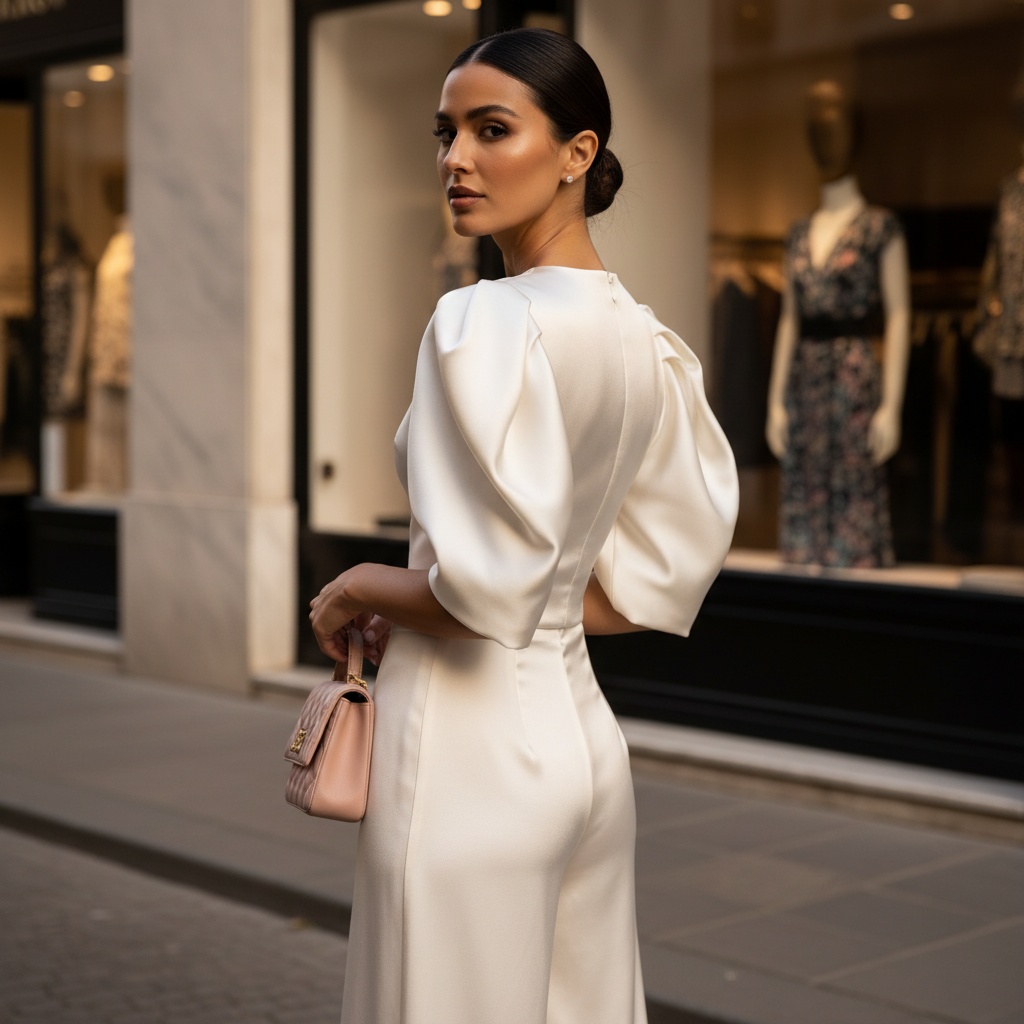 - Puffsleeves: The presence of puffsleeves adds a touch of elegance to the dress, while also being practical for cooler evenings or more formal occasions. The sleeves add to the versatility of the dress, making it suitable for various situations and giving the wearer a sense of sophistication and allure.